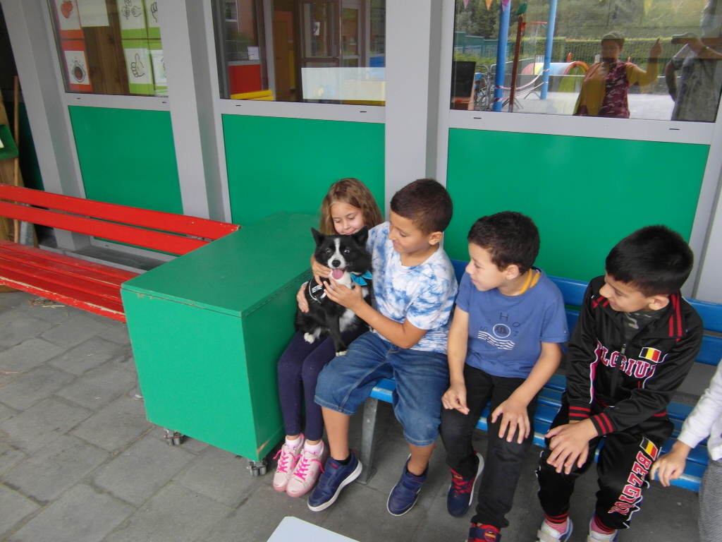 Daiko, de hond van juf Annick, op bezoek.